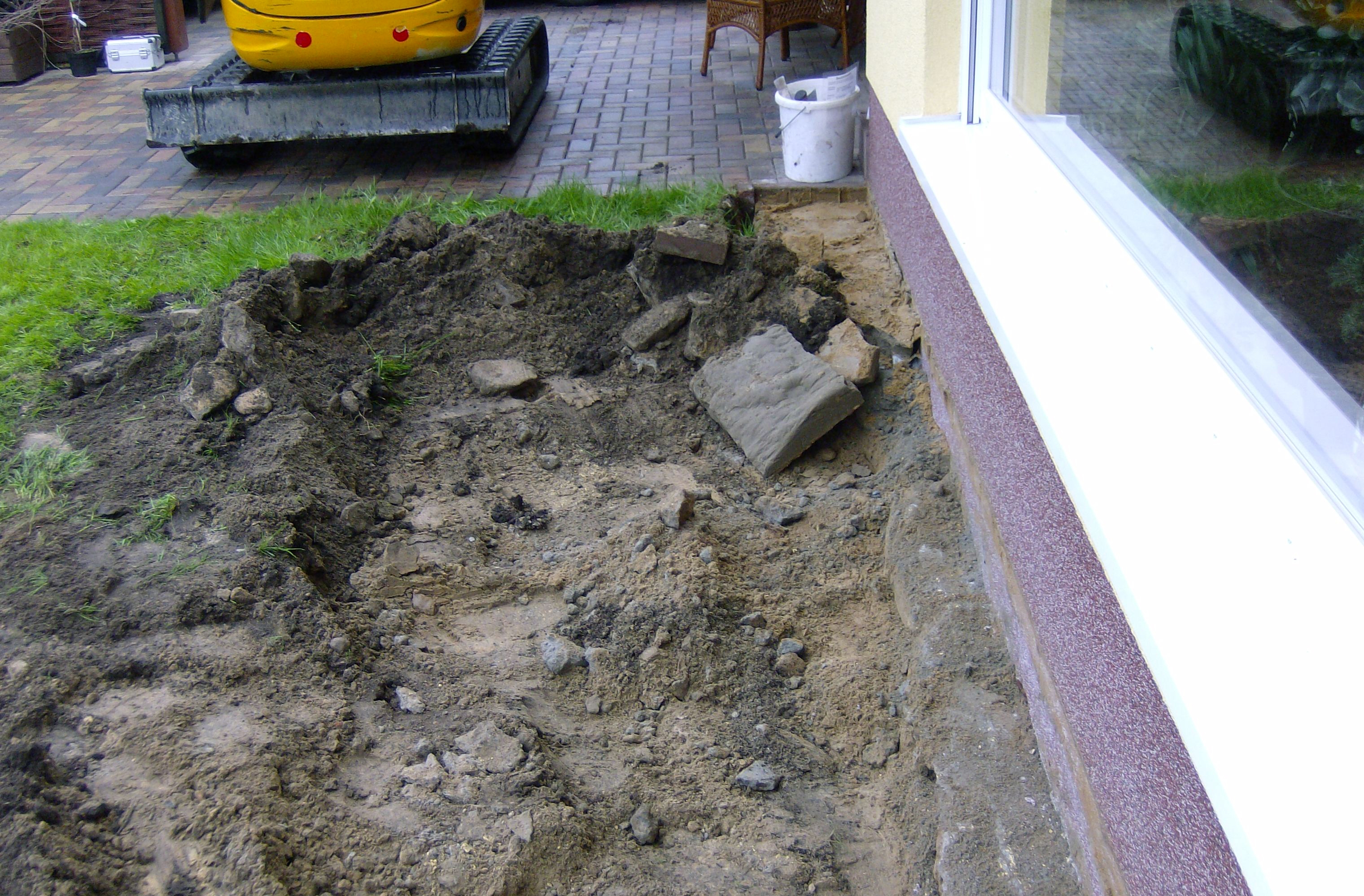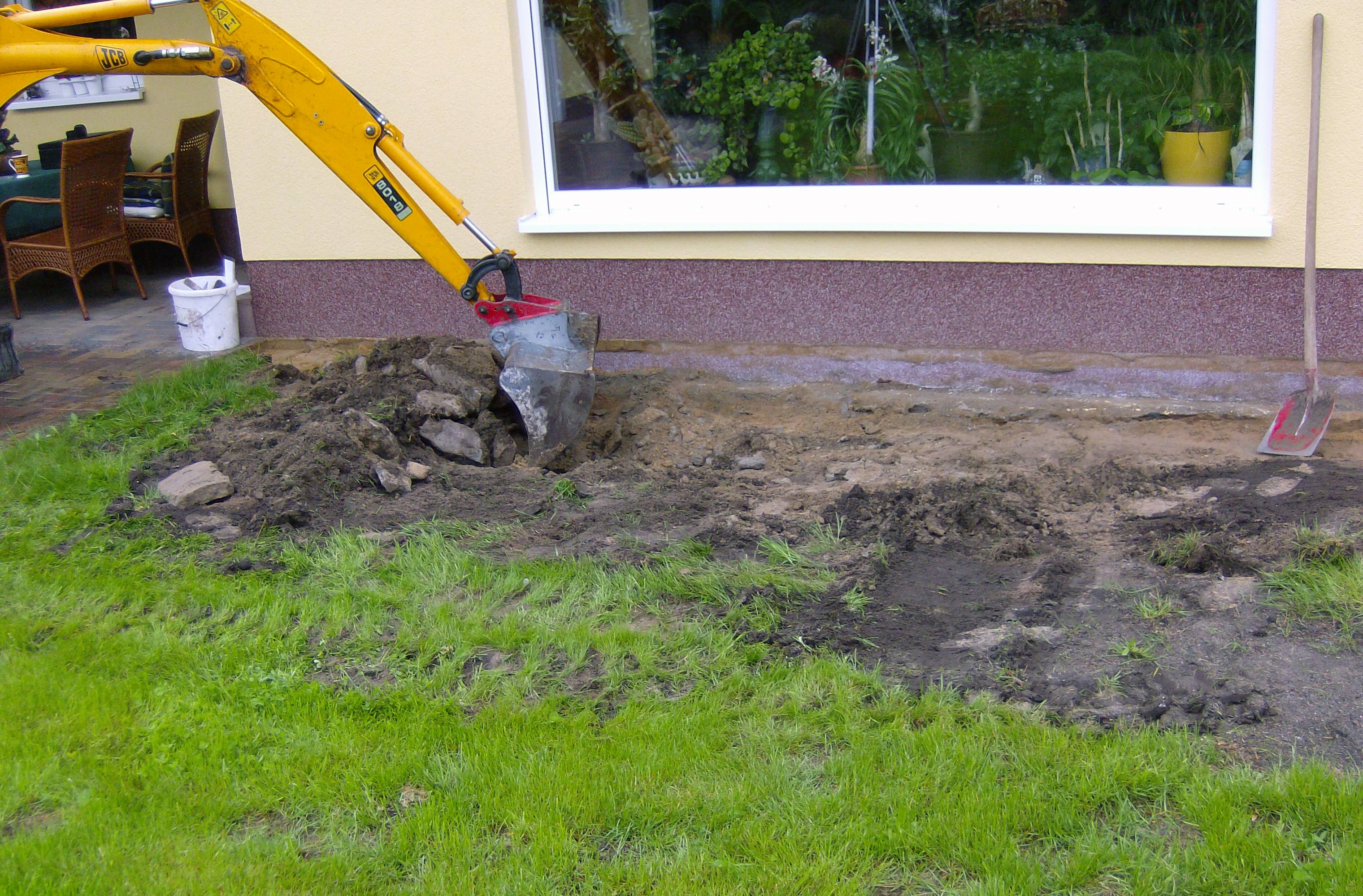 Gründungsarbeiten ob wie hier bei einem Wintergarten oder von einem Wohnhaus unterscheiden sich im Wesentlichen vom Aufwand.